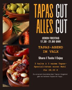 Mittags und abends könnt ihr euch auf leckere warme und kalte Gerichte freuen sowie auf Tapas, die perfekt zu unseren Weinen passen.
